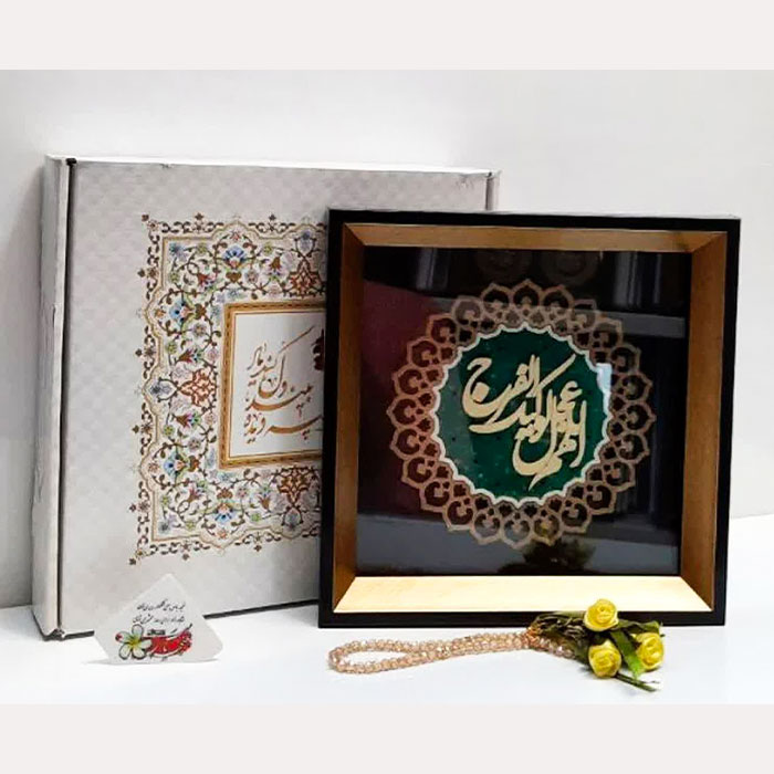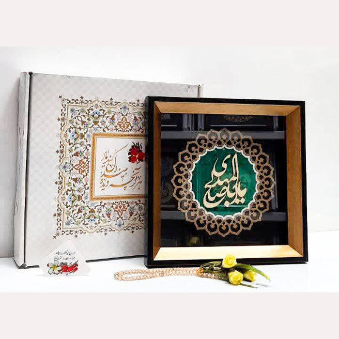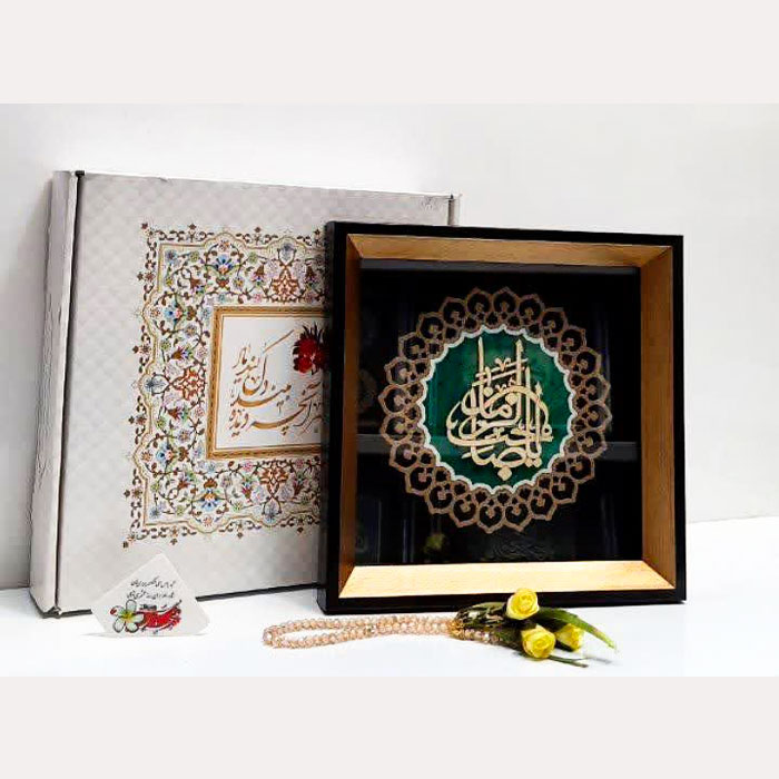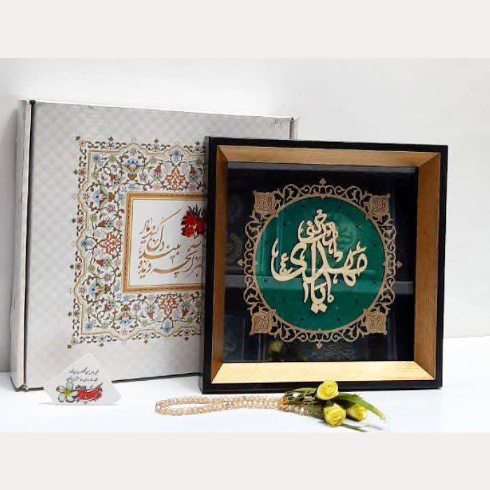 - ابعاد 25*25 cm - قابلیت نصب دیواری و اسقرار بر روی میز - جنس حروف و زمینه قاب از چوب و MDF - چهارچوب قاب از جنس pvc - کارتن روکش دار چاپ شده نفیس -دارای شیشه محافظ