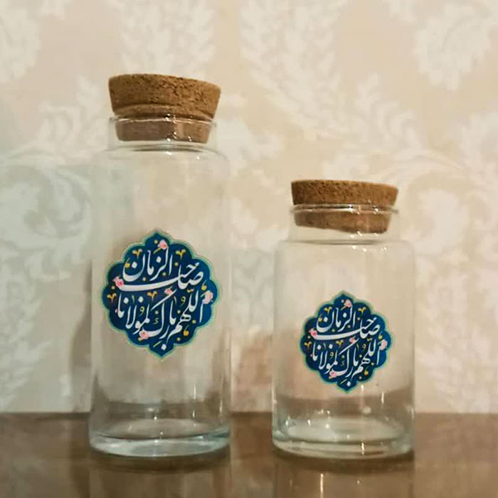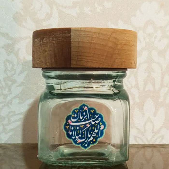 - ارتفاع سایز بزرگ: ۱۲ cm - ارتفاع سایز متوسط: ۹ cm - ارتفاع سایز کوچک: ۶ cm - چاپ مهدوی - جنس بدنه شیشه و درب چوبی - مناسب جای زعفران، ادویه، گل محمدی و ...